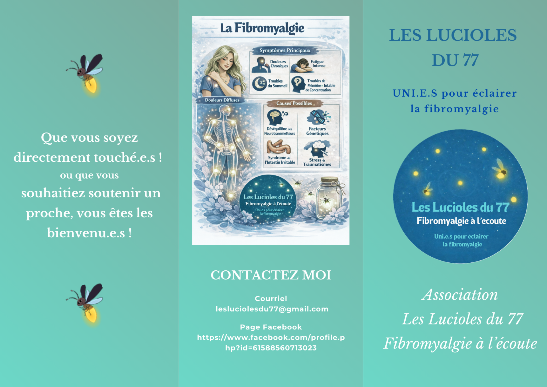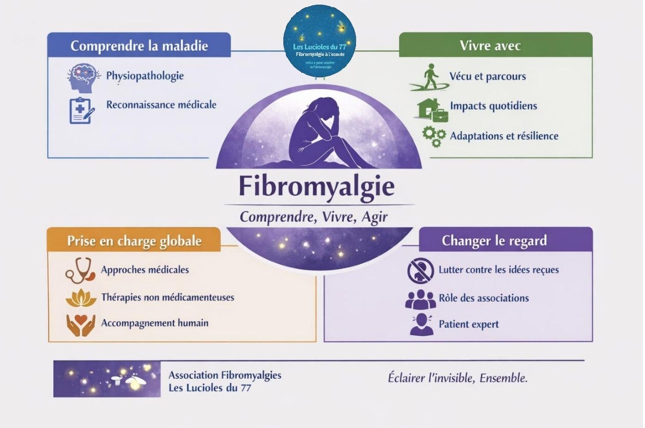"Grâce aux Lucioles du 77, j'ai retrouvé une écoute précieuse et des outils concrets pour mieux vivre ma fibromyalgie. Je me sens moins seule et pleine d'espoir."